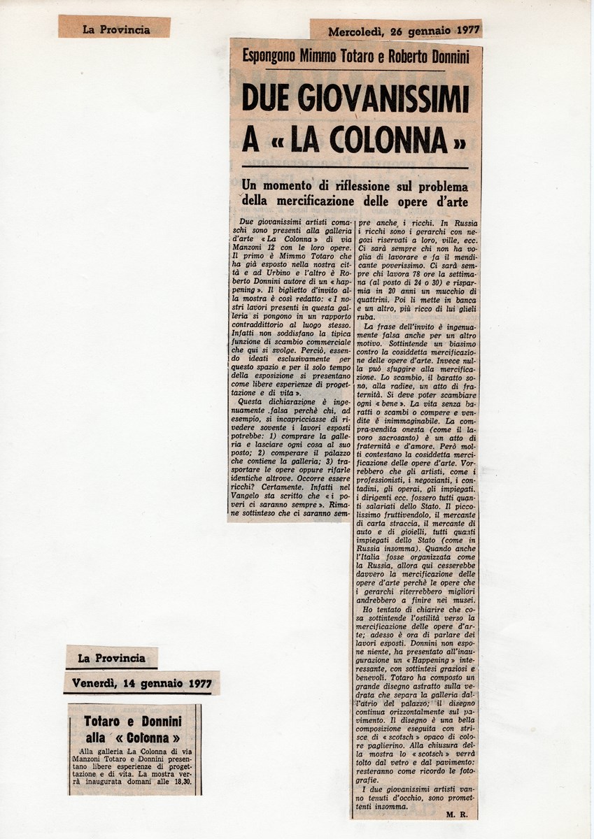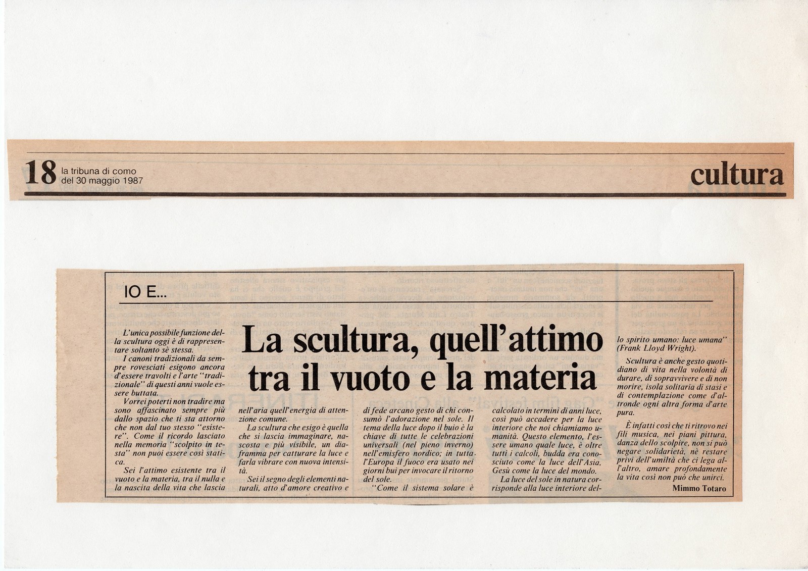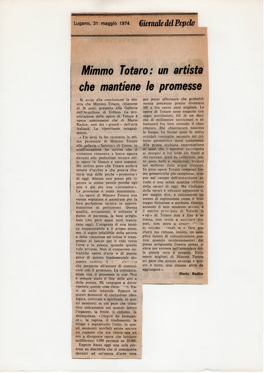La linearità caratterizza la ricerca di Totaro: non solo come manifestazione compositiva, anche come condotta. Linearità significa chiarezza di direzione, in quanto non distratta da varie dispersioni: concentrazione massima lungo una direttrice...